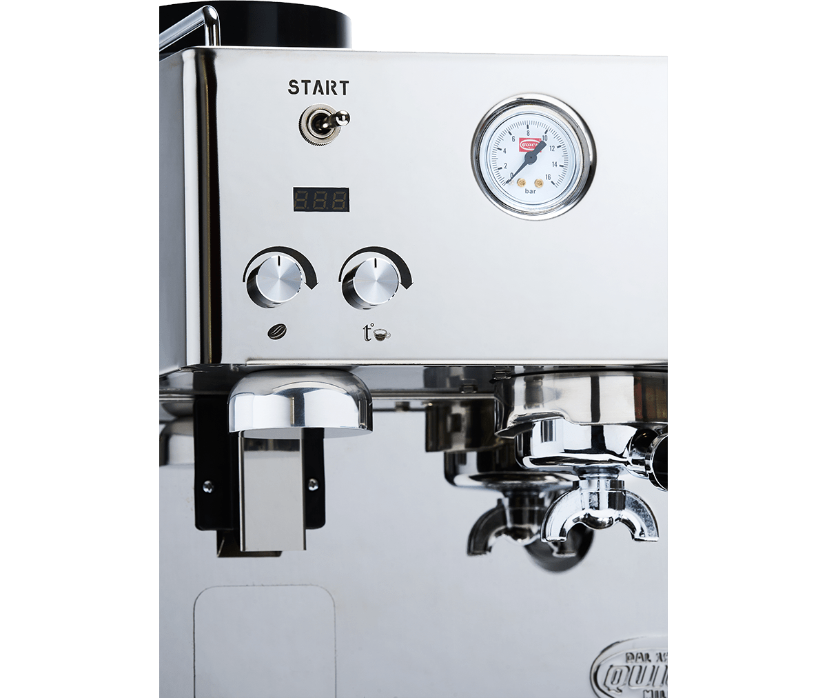 Materjal: Täielikult roostevaba teras; Quick Mill'i keetmisrühm O-rõngaga; kuumakaitsega auruvarras aeratoriga