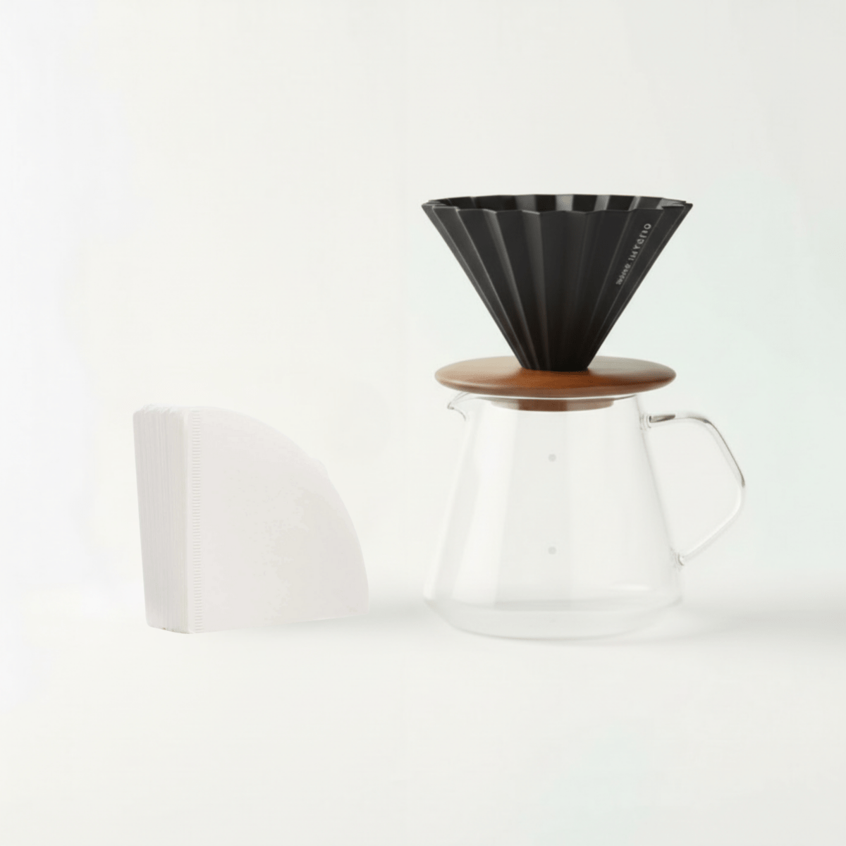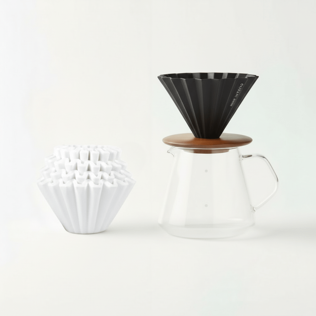 Avasta Jaapani pour over-kunst selle Origami täieliku komplektiga. Kõik, mida vajad erakordse kohvi valmistamiseks täpsuse ja elegantsiga – alates dripperist kuni kannu ja filtrini.