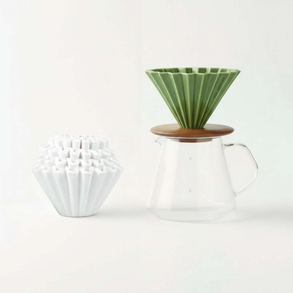 Jaapani käsitöö kohvimasina komplekt - Origami dripper + 100 pakki filtreid