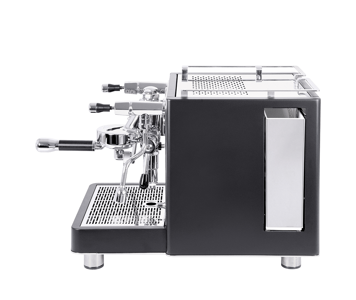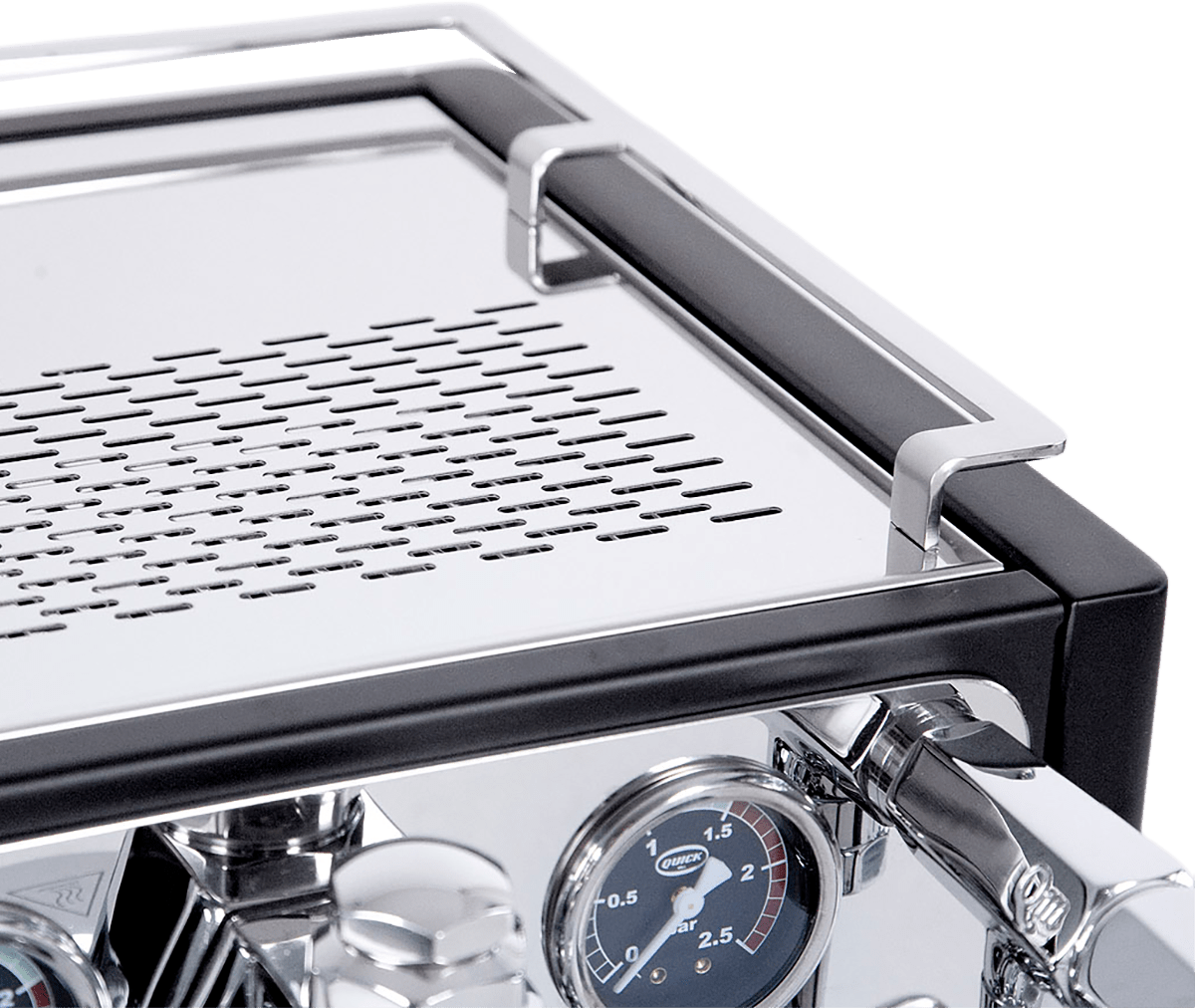 Täisroostevabast terasest konstruktsioon sügavate mustade detailide, joystick-täppide ja Quick Mill Essence grupiga annab professionaalse visuaalse väljenduse, mis sobib nii kööki kui tööruumi.
