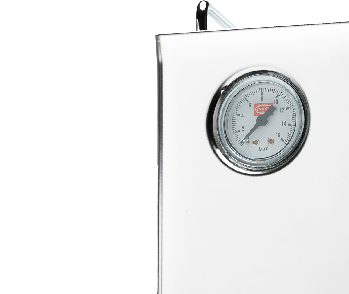 Integreeritud manomeeter (0–16 bar) näitab reaalajas keetmisrõhku ja aitab sul reguleerida jahvatust, doseerimist ja tampimist optimaalse shot’i saavutamiseks.