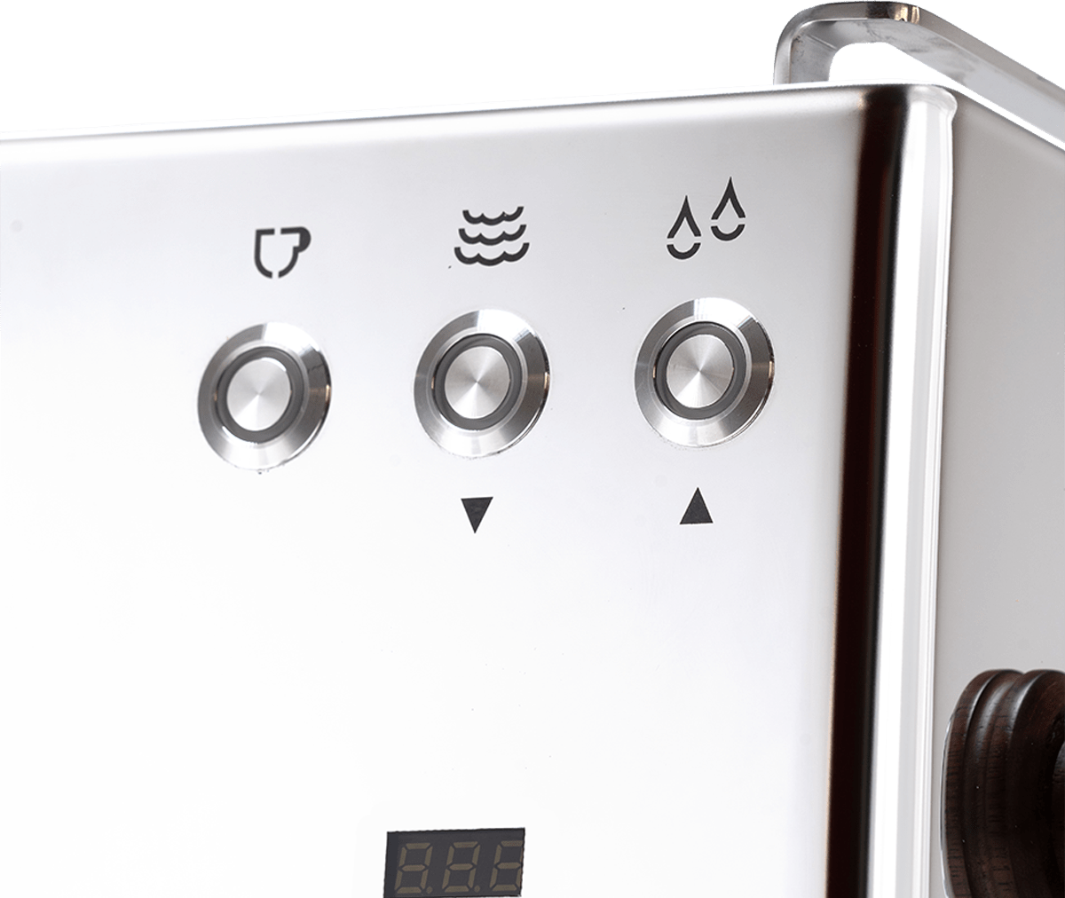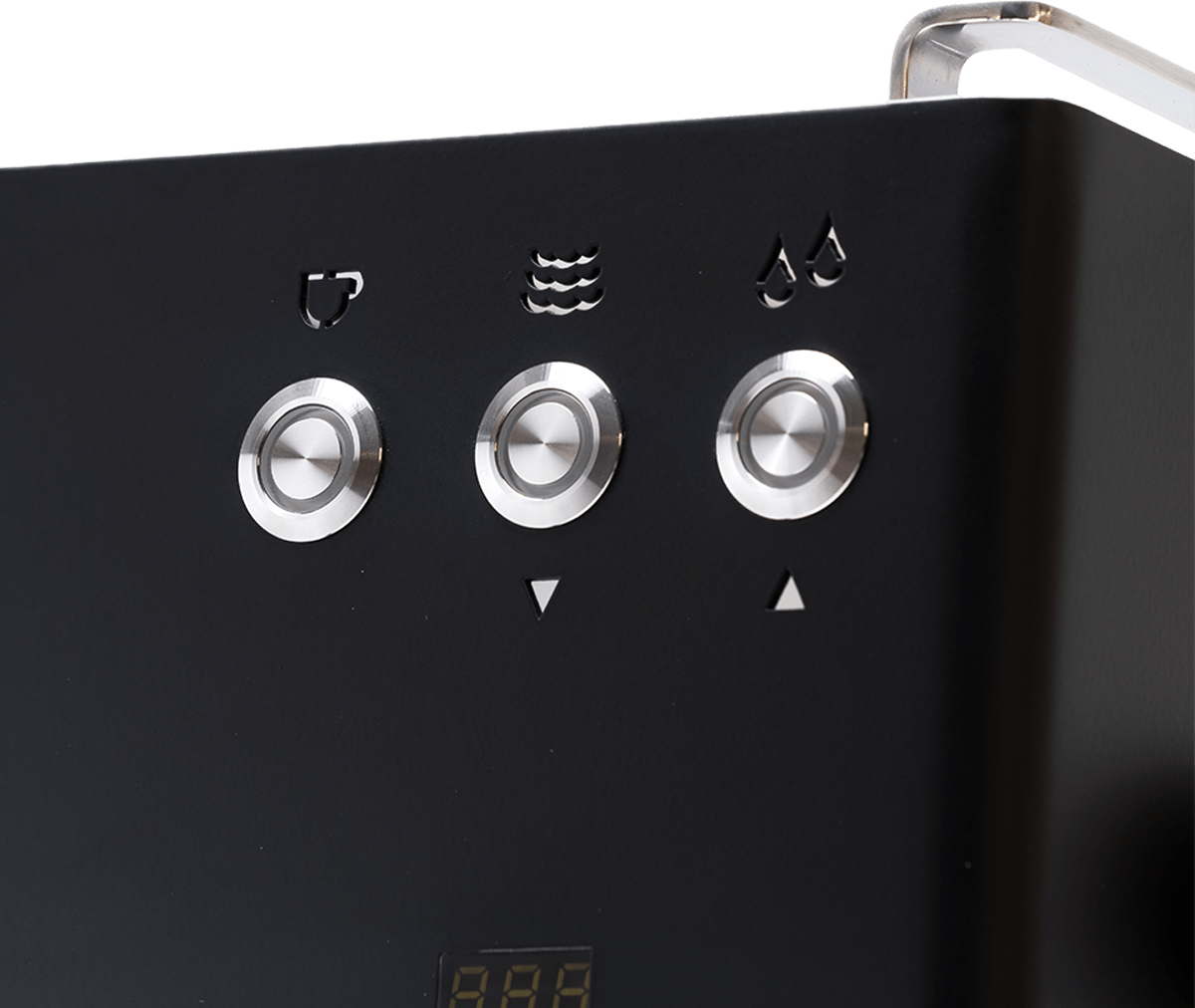 Integreeritud ekraan kuvab temperatuuri, shot-taimeri ja seadistused. Masin pakub ka programmeeritavat eelniisutust, ooterežiimi ja ökomoodi paindlikuks kasutamiseks ja energiasäästlikkuseks.