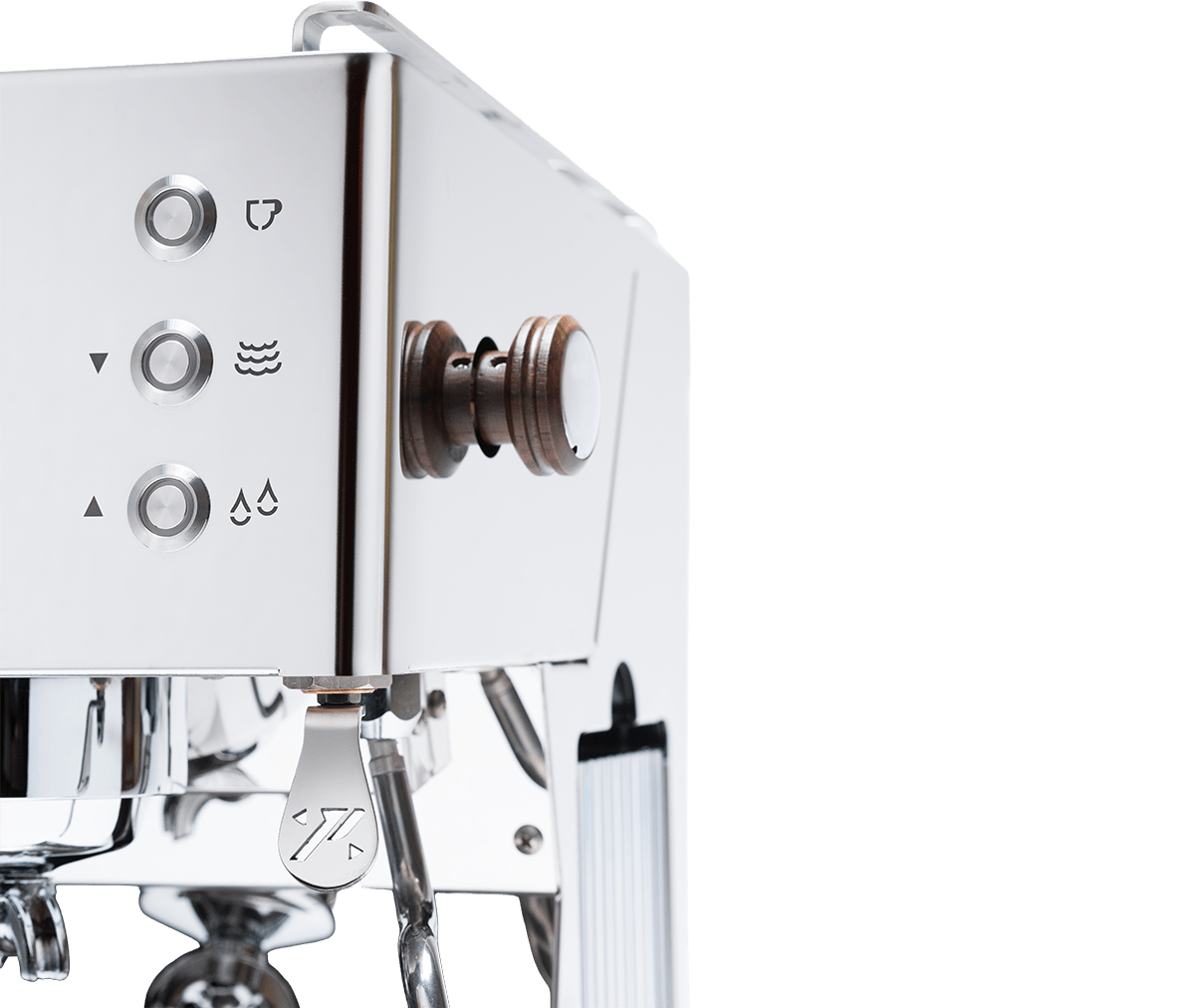 Masin on saadaval roostevabast terasest või mati mustana, mõlemad puidust detailidega aurukäepidemel ja portafiltril. Ring brew group tagab ühtlase soojuse ja usaldusväärse ehituskvaliteedi.