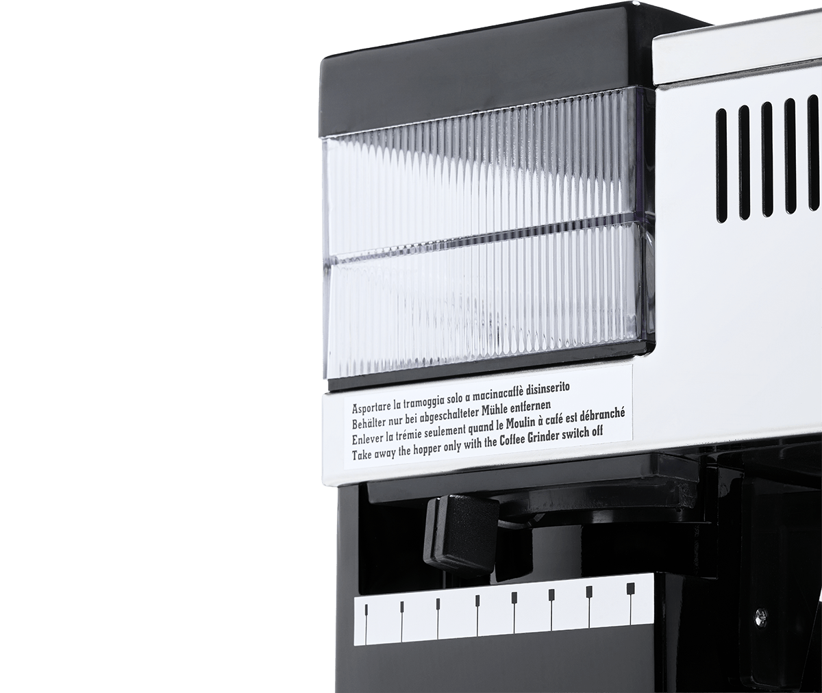 Veski: Integreeritud veski 43 mm lamedate jahvatusketastega; samm-sammuline jahvatusreguleerimine; doseerimiskäpp