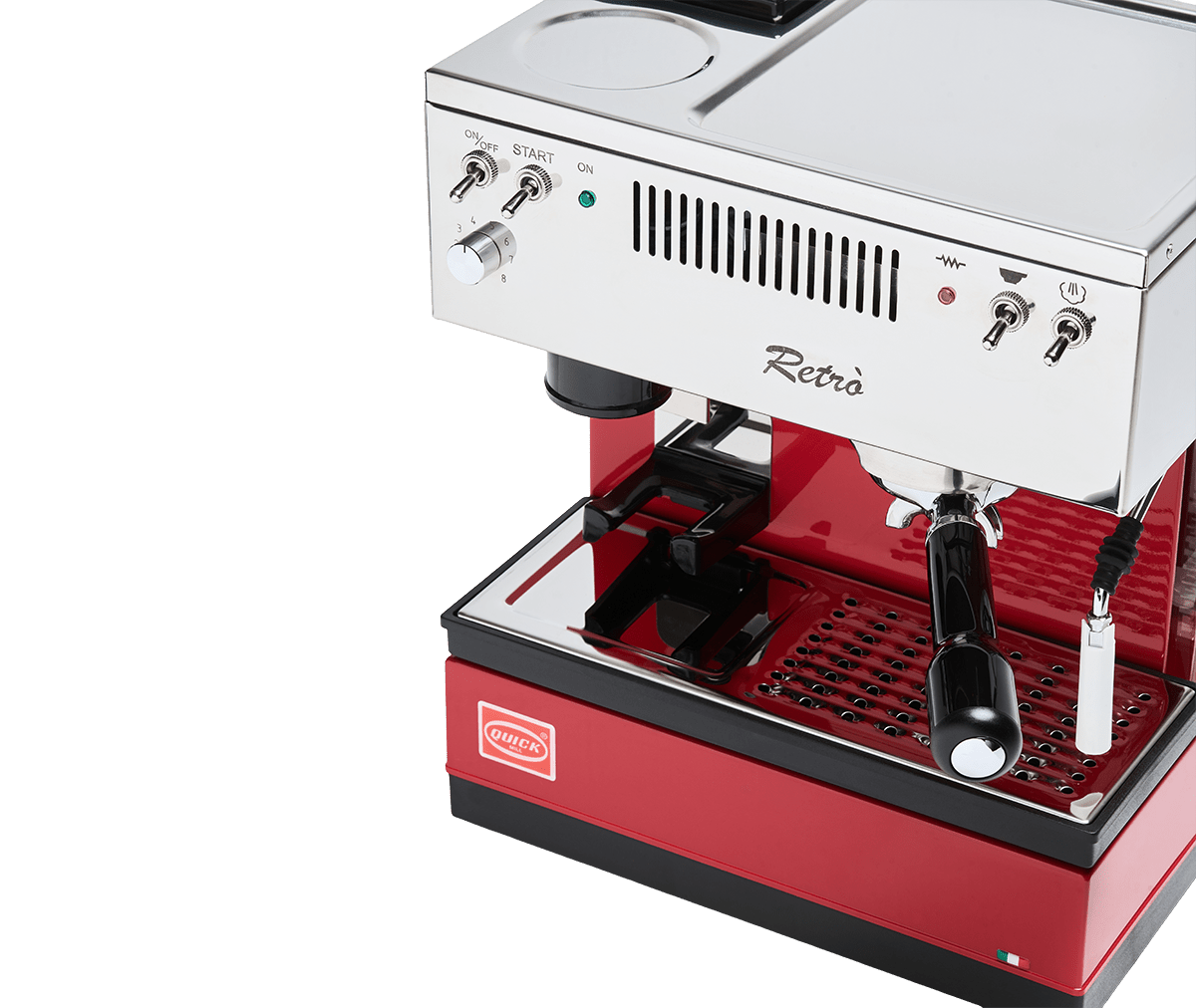 Materjalid: Plastikust korpus roostevabast terasest pealispinnaga; Quick Mill filterkohvigrupp O-rõngaga; auruvarras aeratoriga