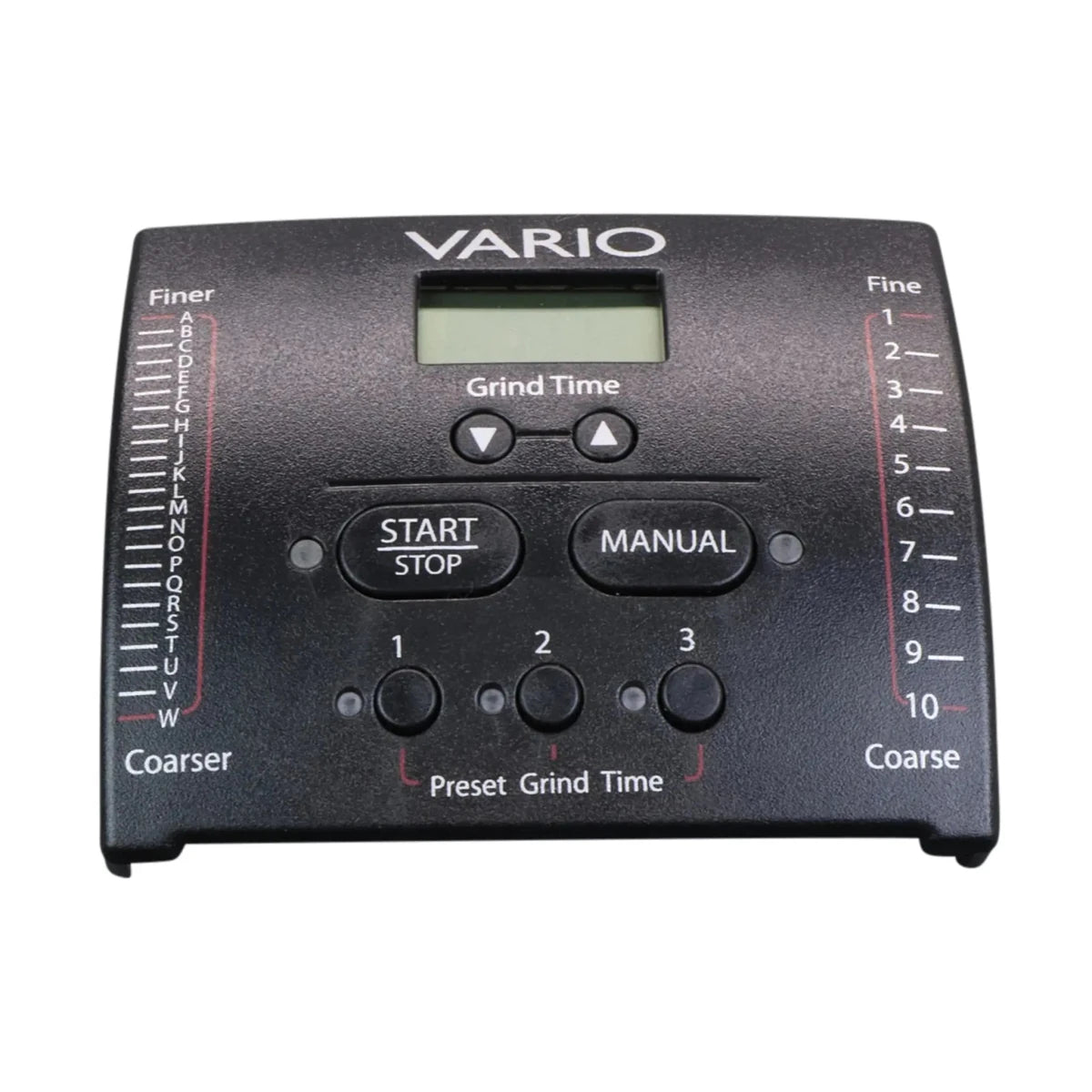 See on originaalne ekraani- ja esipaneeli seade Baratza Vario jaoks, mõeldud varuosana olemasoleva ekraanimooduli asendamiseks.
